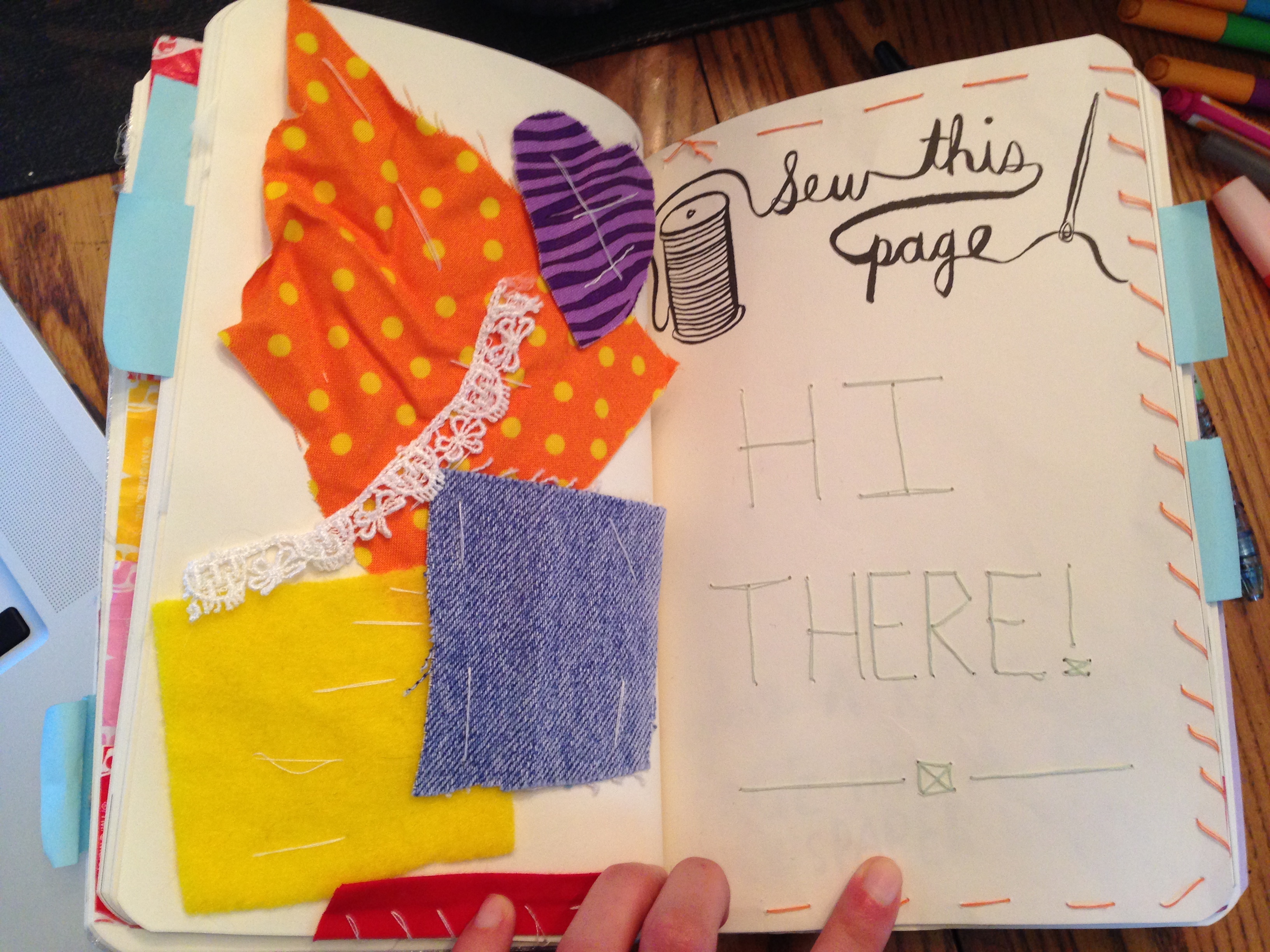 This page has such an interesting, fun prompt that I knew I had to do it ASAP. Fortunately I have a sewing kit with a bunch of different colors of thread, so I had all the materials I needed on hand at the ready!